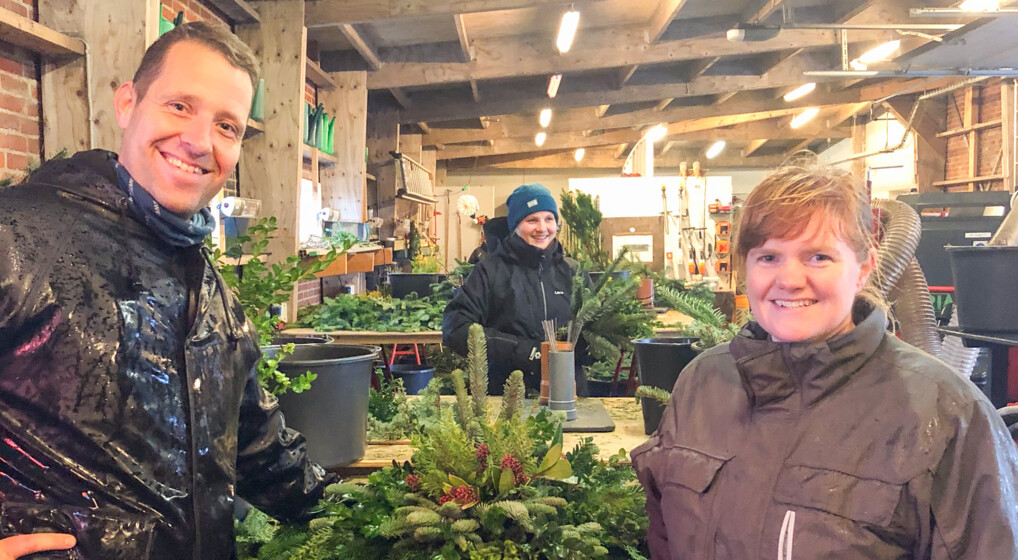 Fra uge 43 arbejder ti medarbejdere – nogle på deltid - på højtryk for at producere dekorationer, buketter og såkaldte granhaler til gravstederne, så kirkegårdene kan gå vintermørket i møde med lidt hjertevarme forklædt som gran og kogler.