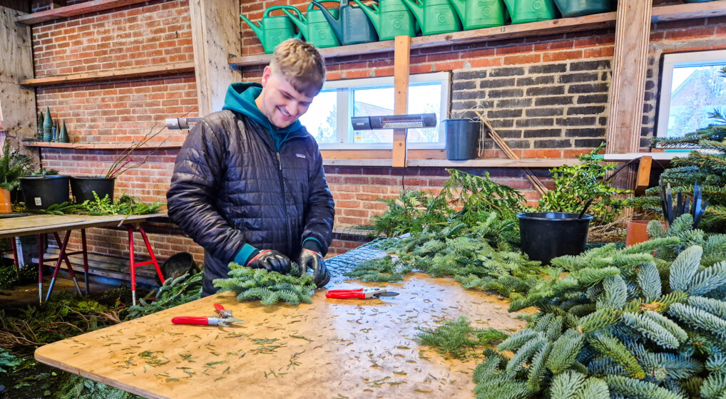 Også hendes kollega i menighedsrådet, Markus Munk Jensen, fik fornyet blik for kirkegårdspersonalets arbejde, da han sammensatte en granhale – en slags guirlande i gran.