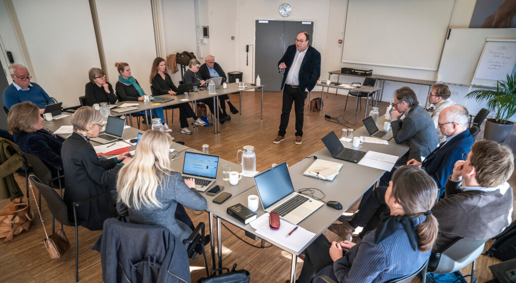 Dåbskommissionen i arbejde. Kommissionen er bredt sammensat af blandt andet teologer, præster, universitetsfolk, kirkemusikere, sprogkyndige, psykologer og lægfolk. Foto: Martin Damgaard / Hverdagsvinkler