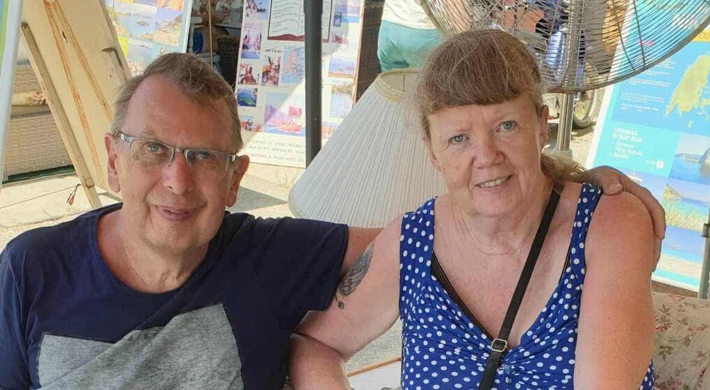 Lene Juul Fonnesbæk med sin mand Thomas Bundgaard-Nielsen, der i 2019 blev alvorligt syg. Hun opfordrer alle til at tale med en præst, hvis de har noget på hjerte, som de har brug for at dele. Foto: Privat